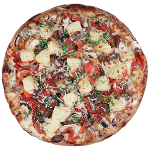 Mushrooms, onion, capsicum, olives, pineapple, garlic, mozzarella, parmesan, fresh parsley and herbs