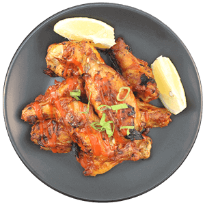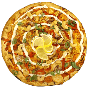 Chicken, mozzarella, caramalised onion, Roasted capsicum, with shallots, peri peri sauce, Moroccan spices.