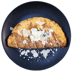 Bacon, chicken, potato, shallots, mozzarella, parmesan with cracked pepper, salt flakes and a creamy cheesy garlic sauce