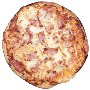 Pepperoni, ham, mushrooms, mozzarella, camembert, pizza sauce and fresh herbs