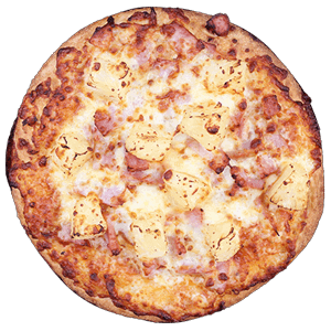 Ham, pepperoni, green capsicum, mushrooms, olives, onion, pineapple, mozzarella, parmesan, garlic and herbs