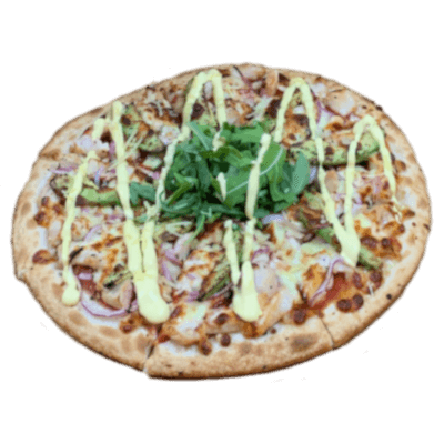 Chicken, avocado, onion, mozzarella, parmesan and rocket with hollandaise sauce